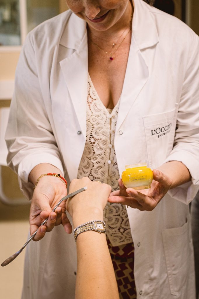 Broderies de rond de serviettes, serviettes de yoga et blouses pour les évènements d'influence de L'occitane via B-Good Event (photos Claire Defer)